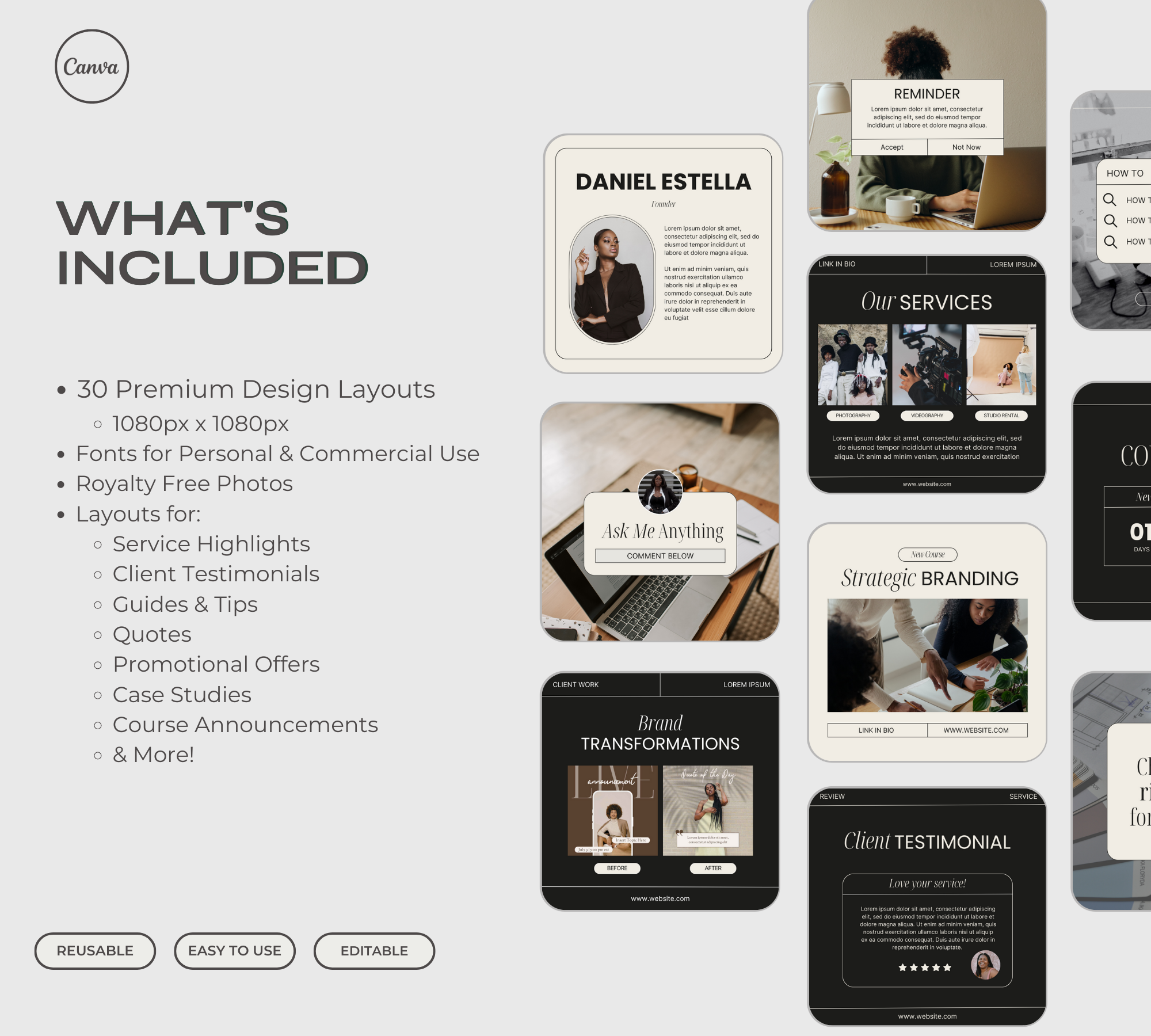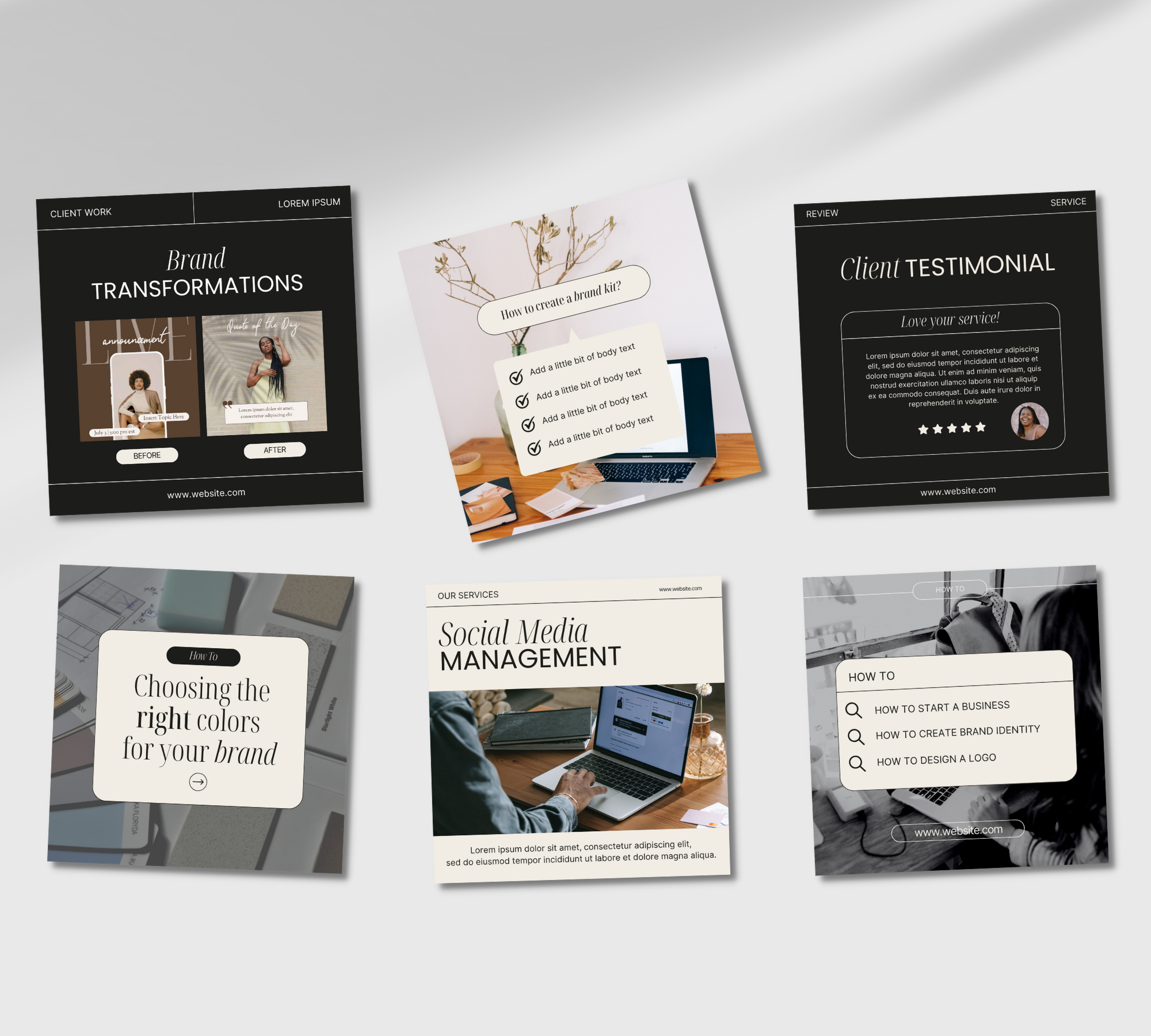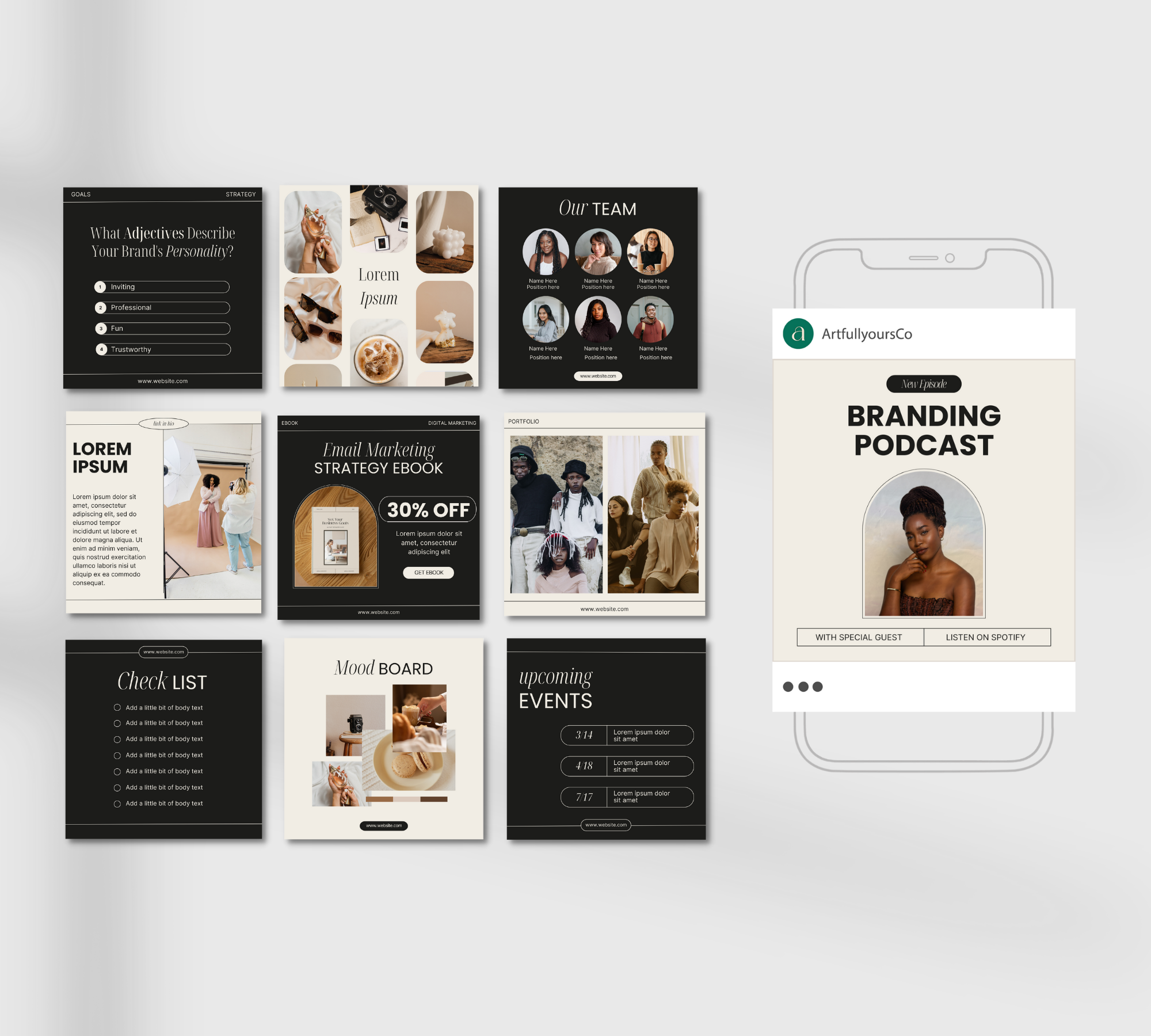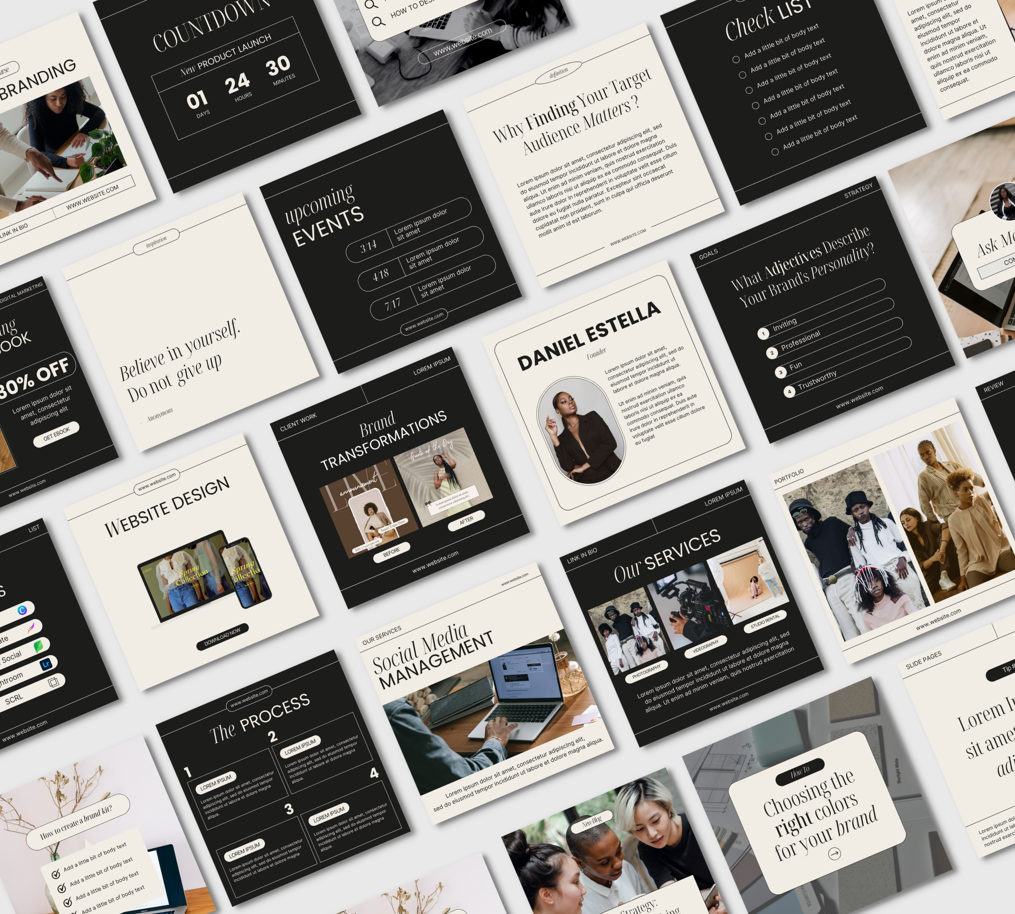 • Brand Identity: With easy customization, you maintain a cohesive brand image across all posts. Swap out images, text, and colors to match your evolving brand story.