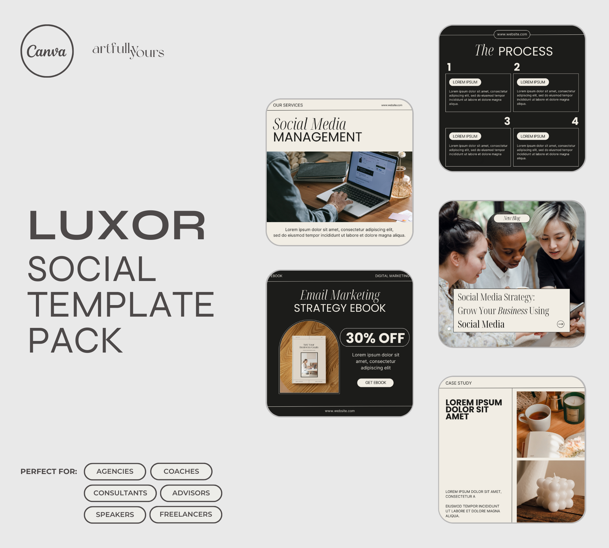 Boost your credibility with Luxor – a Canva Social Template designed for coaches, consultants, freelancers, speakers, advisors, and agencies.