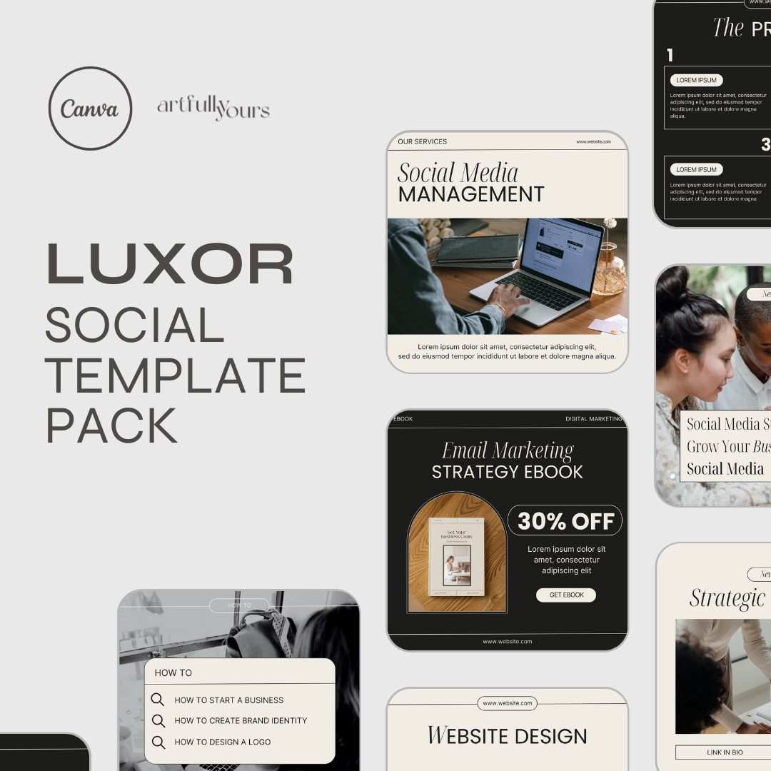 With clean, sophisticated layouts, Luxor gives you the power to communicate your expertise effectively and in style. Easy to customize, Luxor ensures a cohesive and professional look across your social media platforms, helping you leave a strong impression and enhance your brand’s credibility.